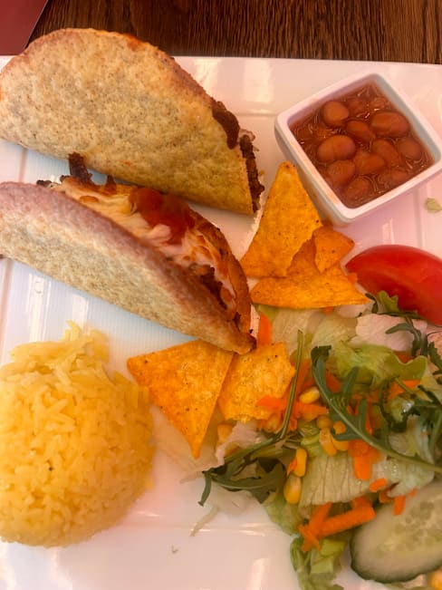 3/10Unfortunately the experience wasn't that good. My partner and I ordered 2 margaritas first and then 1 plate of tacos (1 chicken and 1 beef) and a burrito (beef) . So first of all, the margaritas were nice and we enjoyed them. When the food came, I became very sceptic of it. The tacos came on a hard shell like the ones on the supermarket. Weird but ok. When we tasted it.. Omg the chicken wasn't fresh so, SKIP. we go for the beef and omg.. No spices no nothing, it was just cooked beef. Terrible flavor all in all. Conclusion we didn't eat and send it back. They brought the bill, we paid and left.