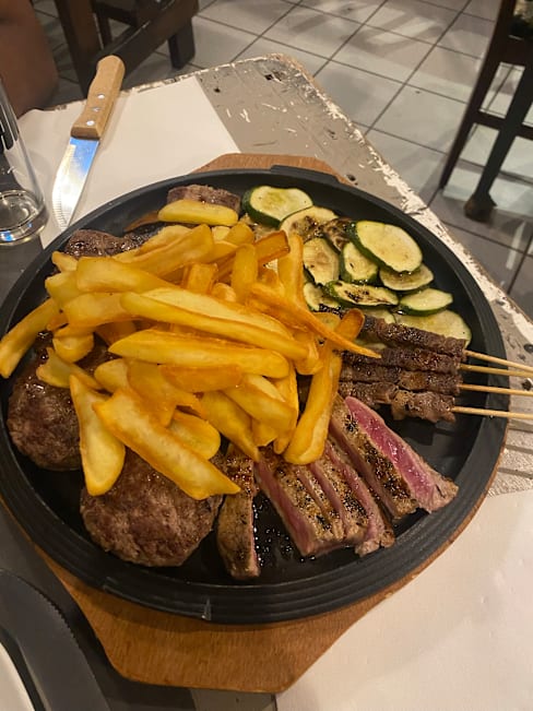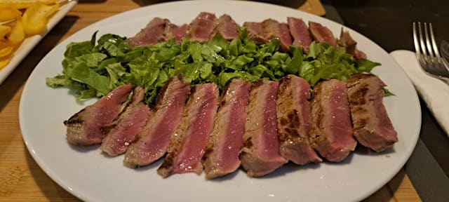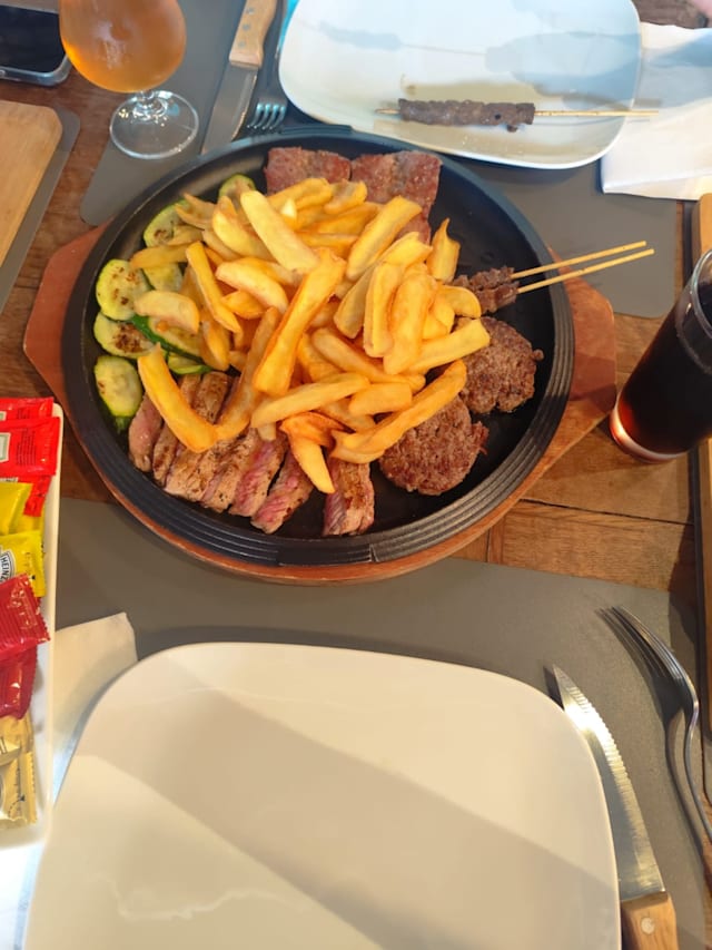 10/10Honestly a hidden gem. Our burgers were perfectly done and the starter plate we shared was awesome as well. The owner was really friendly and chatted with us via Google translate because we were early and the only ones there. Great experience with stellar food.