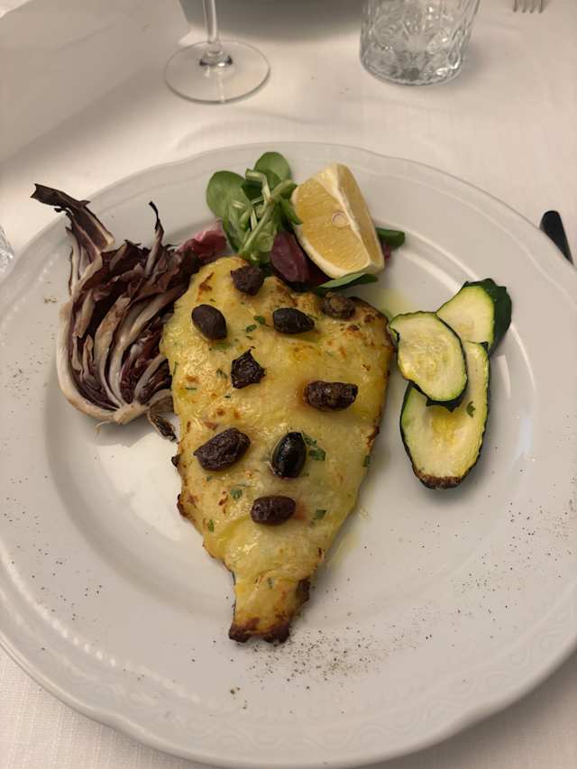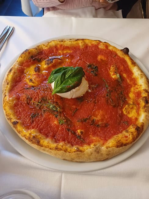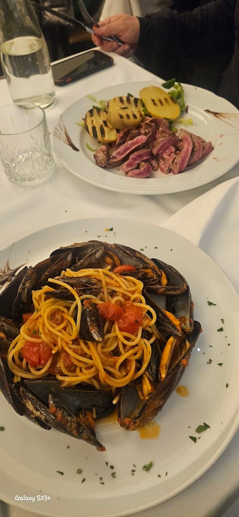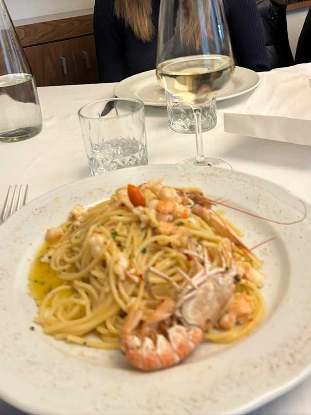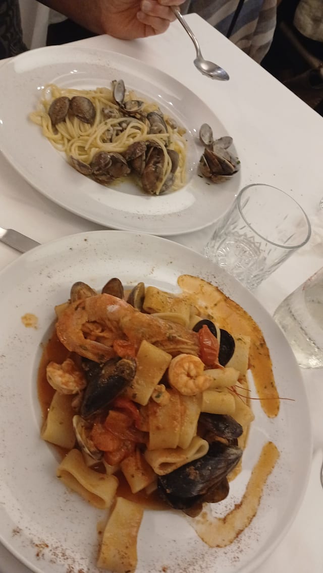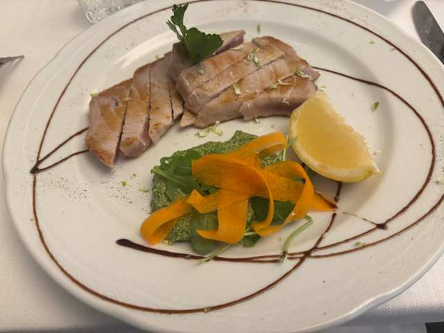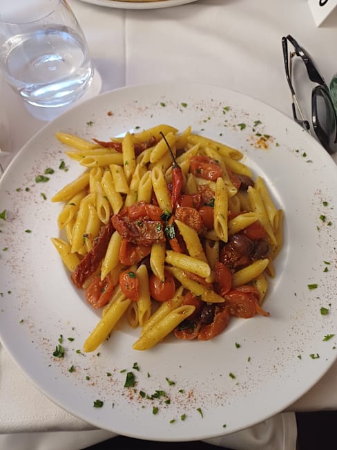 8/10Flavorful Italian food! We took a late booking at 9:30 pm (jet lag) and enjoyed a white linen, sit down dinner. My family had fish and pasta dishes with fresh tomatoes and spinach. We inhaled the food!