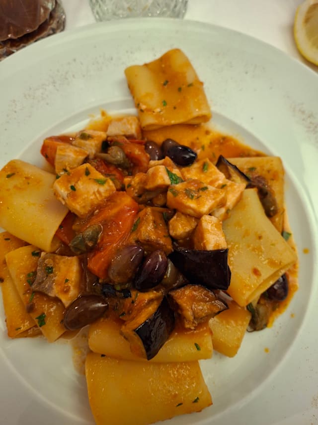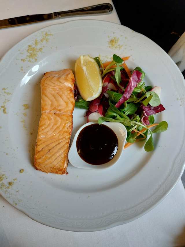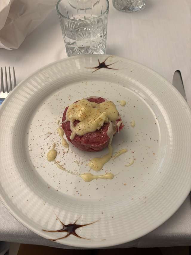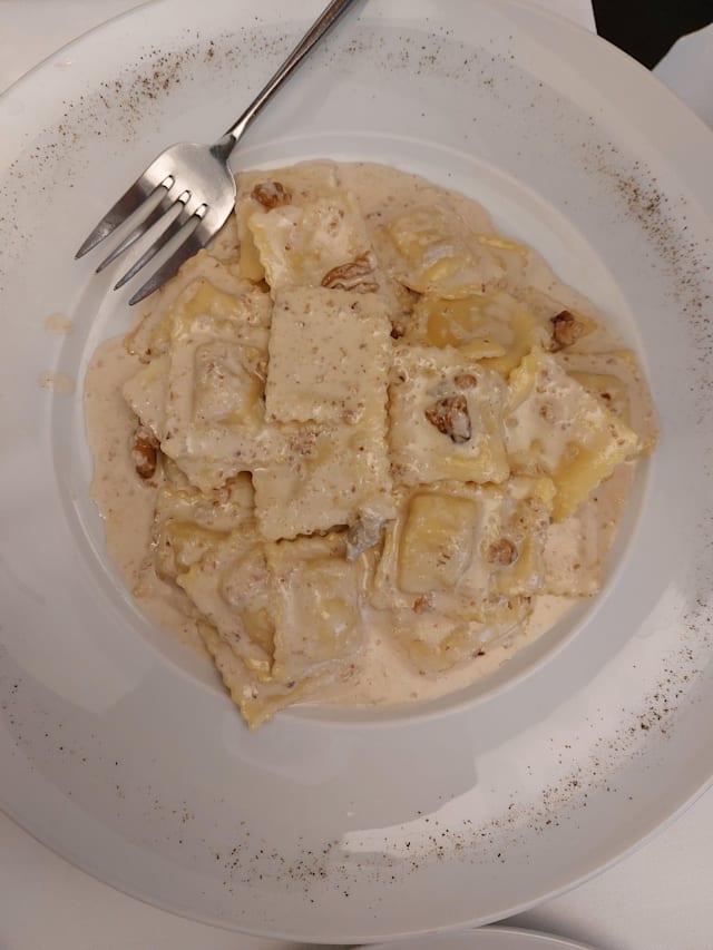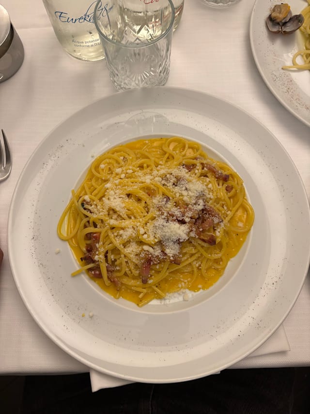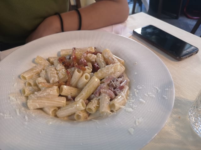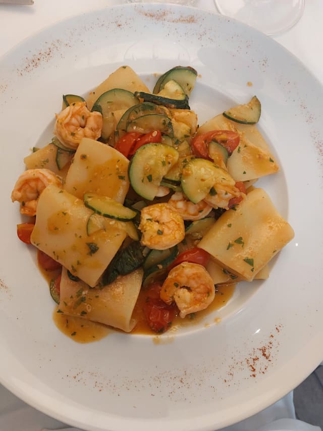 8/10Flavorful Italian food! We took a late booking at 9:30 pm (jet lag) and enjoyed a white linen, sit down dinner. My family had fish and pasta dishes with fresh tomatoes and spinach. We inhaled the food!