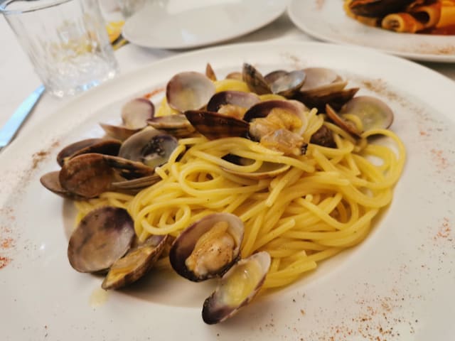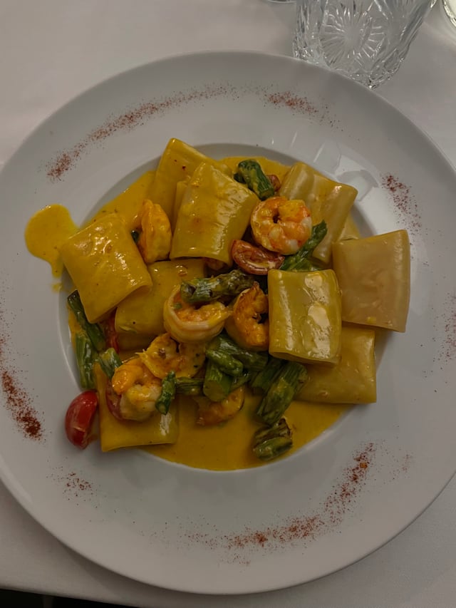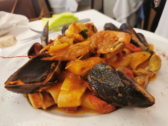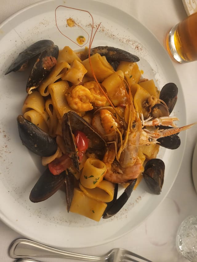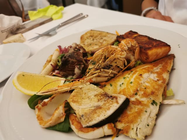 8/10Flavorful Italian food! We took a late booking at 9:30 pm (jet lag) and enjoyed a white linen, sit down dinner. My family had fish and pasta dishes with fresh tomatoes and spinach. We inhaled the food!