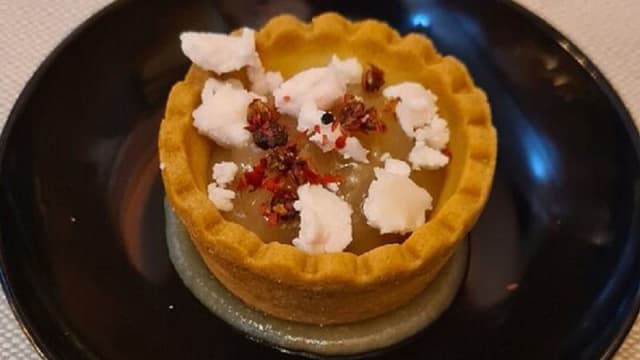 Tartare di manzo, alga nori, olive, nocciole e scarola