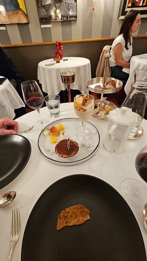 4/10Unfortunately, not sure if we felt underwhelmed because we had a 4 months old in our table of 7 or the atmosphere was artificial and impersonal. The pictures online are confusing as it feels there’s a view to the restaurant but there isn’t. The appetizers were fantastic, main course average with us covering all of the main options within our table. The Tiramisu was below average at best. This was a _subpar_ experience given the price we paid for it. Very happy for the personal touch that they offered a “free Tiramisu” to celebrate my daughter’s birthday! Given the price point there are 100s of other better restaurants in Paris like David Toutin!
