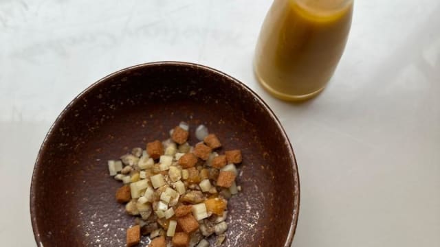 Calvados sassy, sirop au caramel beurre salé, verjus, jus de pomme