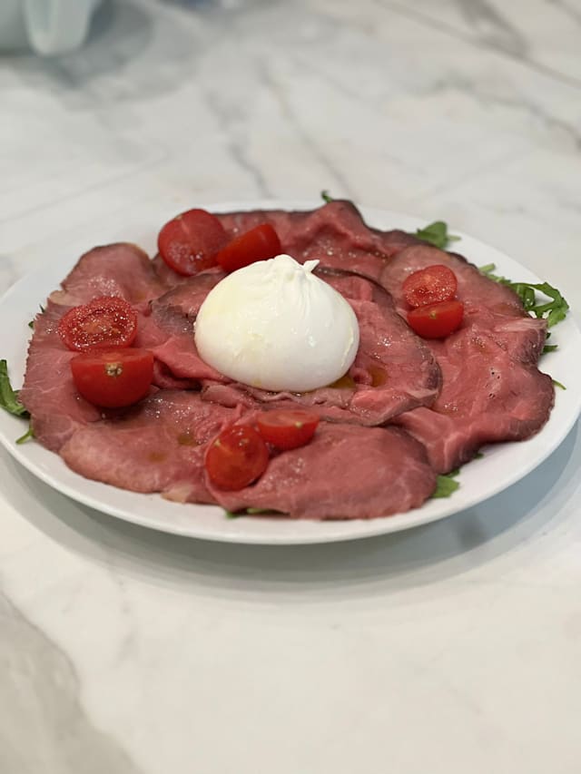 Roast-beef con burratina rucola e pomodorini