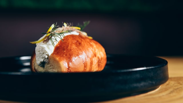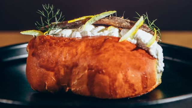 Maritozzo romano artigianale con baccalà mantecato e limone candito