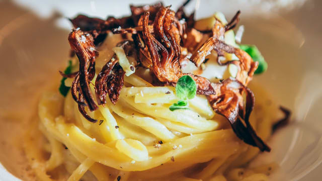 Rigatoni cacio & pepe o rigatoni carbonara con tartufo nero fresco