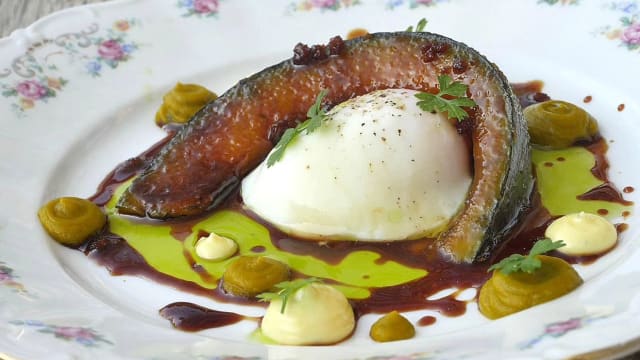 uovo, Radicchio in Agrodolce e crema di piselli alla nepitella