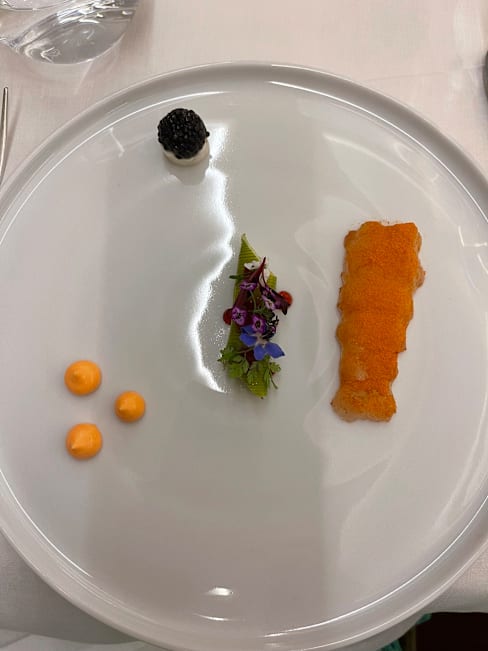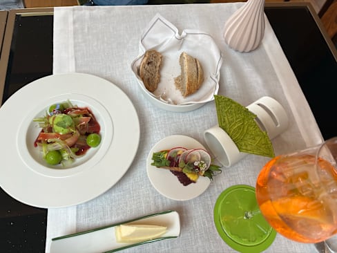 6/10We opted for your Marine Sensation Journey, a multi-course seafood tasting menu (€170 per person), with two additional wine pairings. The setting? Absolutely stunning — dining rooftop with sweeping views of Lake Como is something truly special. Unfortunately, the rest of the experience didn’t live up to the scenery. While there were 4 to 5 courses, only the scallops left a lasting impression. One of the fish dishes arrived undercooked, a surprising and disappointing mistake at this level of fine dining. The rest of the courses ranged from forgettable to mismatched, and overall lacked the finesse you'd expect from a tasting menu at this price point. The wine pairings were fine, but nothing remarkable, and certainly didn’t enhance the courses in any notable way. Service was courteous but detached, not particularly warm or engaging, which made the evening feel transactional rather than curated. We spent over 600EUR for 2 people, feeling like the view did most of the heavy lifting.
