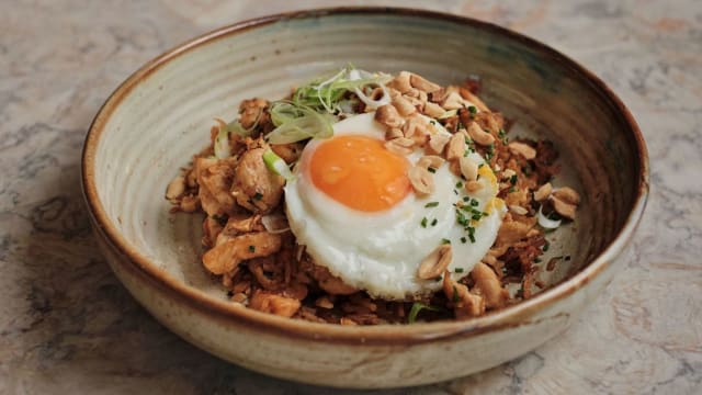 8.5/10the space is pretty and vibey, the buns and cauliflower tempura were good, pad Thai was ok. service was professional.