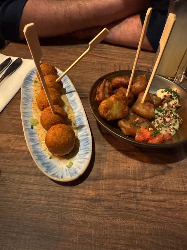The wine and the Comte croquettes were fine if underwhelming. The pork cheeks were gristly and chewy, and when I told the server, she said “oh” and left.