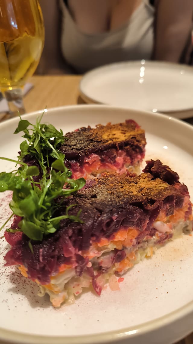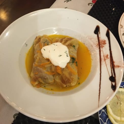 2/10The staff is so rude, it was our first time and we asked for advice, the waitress did not even answer. Food was ok but overprice for the quality, after 1 hour we were still having mains and one of the waitresses start cleaning the toilet that was at 1 meter distance from us , blocked the door with a chair , so we supposed to finish our main and dessert with toilet and chemical smell all around . They basically kicked us out , we asked for dessert cause we wanted to try and the waitress was taking the order was looking at us in such a bad way (it was 11.10 pm) , so we decided to cancel and leave . In the end they also charged us for a different wine instead the one we asked for , and when we told them you guys can not imagine what a cinema they made . They completely ruined our Valentine day , super disappointing . If you want to try russian cuisine do not go there . Terrible experience.
