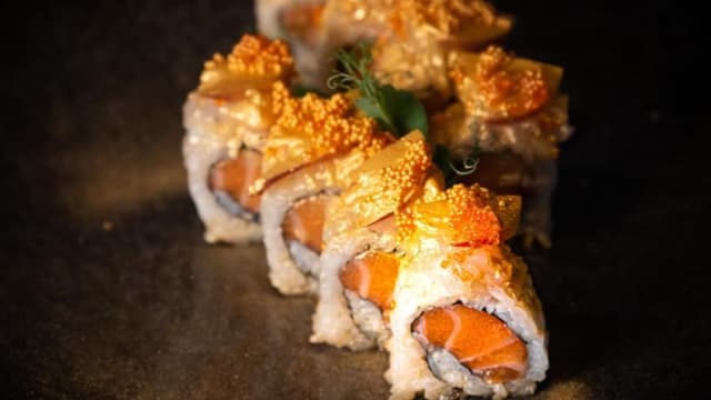 Salmone, avocado, scampi, mango, tobiko e polvere d'oro 24k