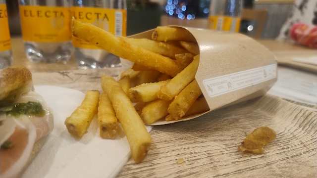 - Salamella di pasta fresca, peperoni grigliati, cipolla rossa caramellata, ketchup e maionese.