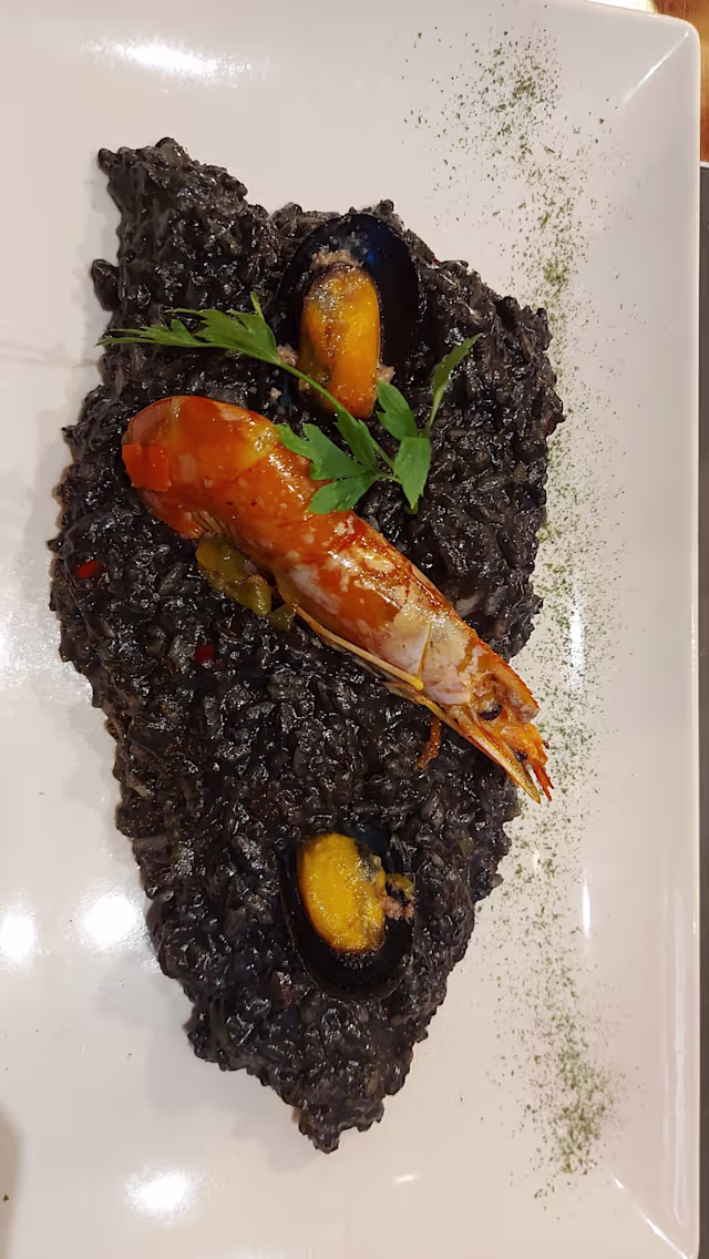 - Mariscos con tinta de calamar.