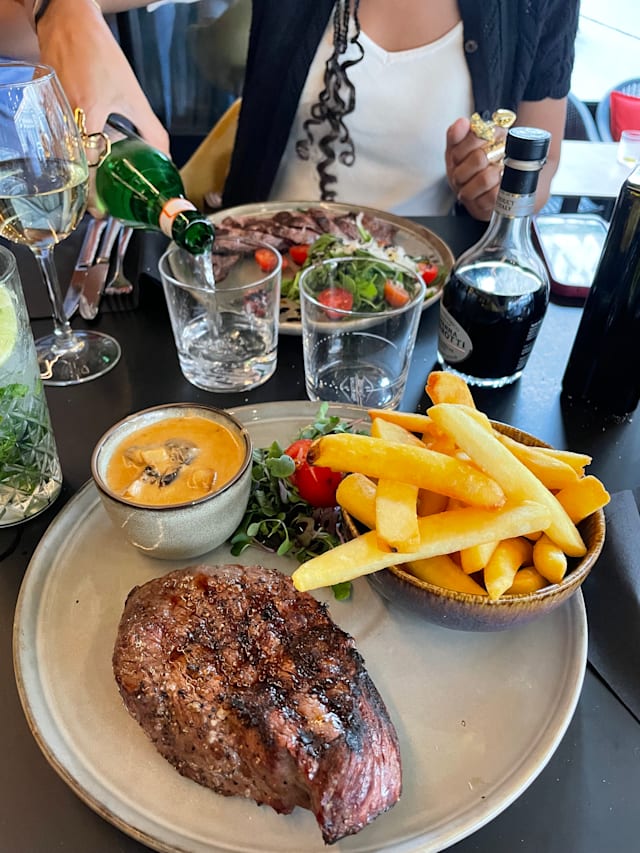 7.5/10The food was nicely presented, the Music was nice and the crowd was a nice mix of people. Unfortunately, the menu prices listed online @The Fork are up to 12€ more expensive per dish in the Restaurant and we were very clearly informed that tips are not included.