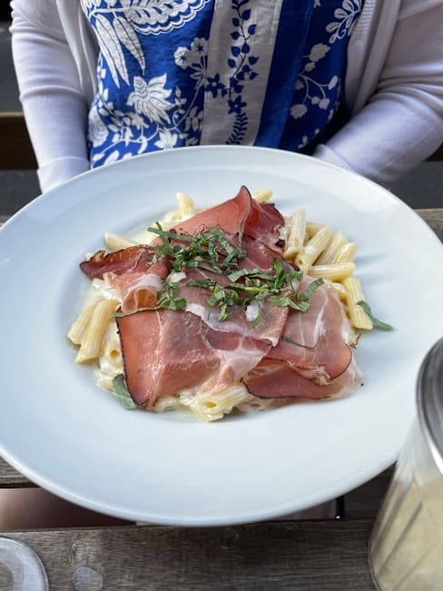 10/10Loved the area outside. Fantastic service and food fresh and delicious. The drink of the day was a Limonade with fresh mint. Also awesome. Highly recommend.