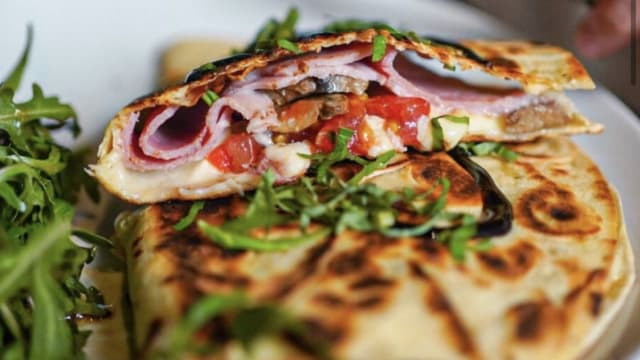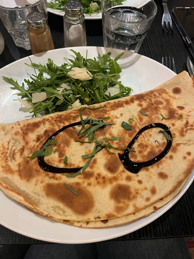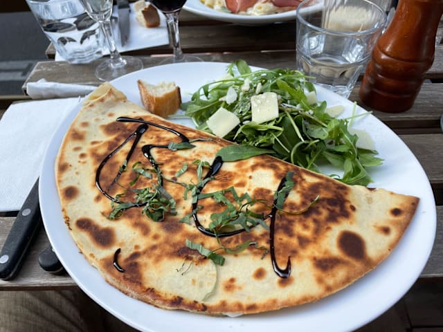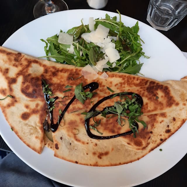 6.5/10Had early mid-week dinner here. Appreciated quiet of the restaurant coming in from the noisy street. Pleasant deco mix of bistro and industrial style. Fast service. Caesar salad was nothing special but aubergine piadina was very nice and too big to finish. Mango tiramisu was delicious.