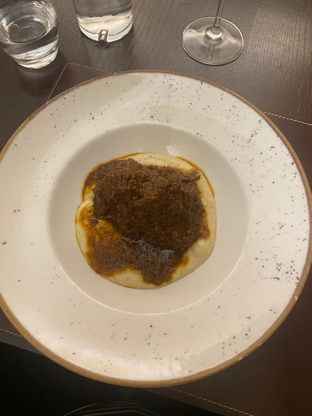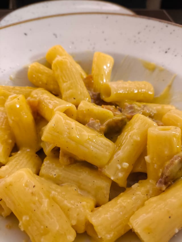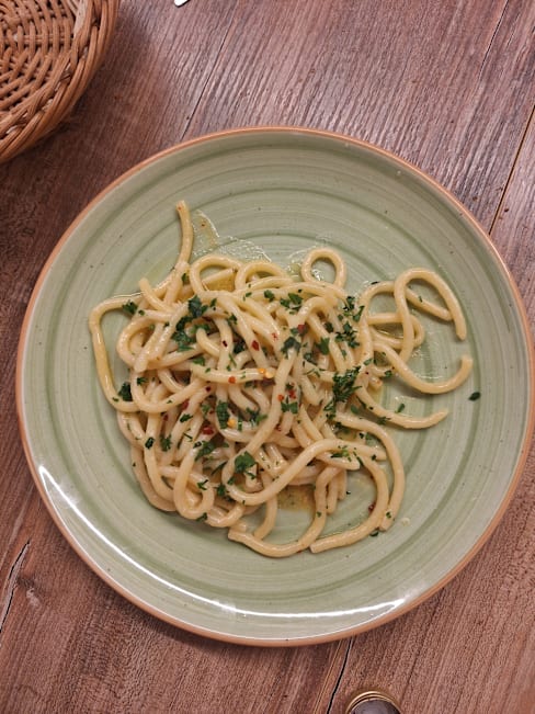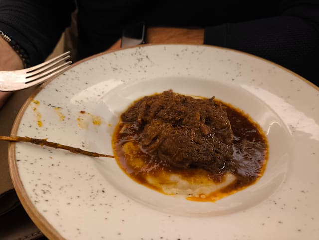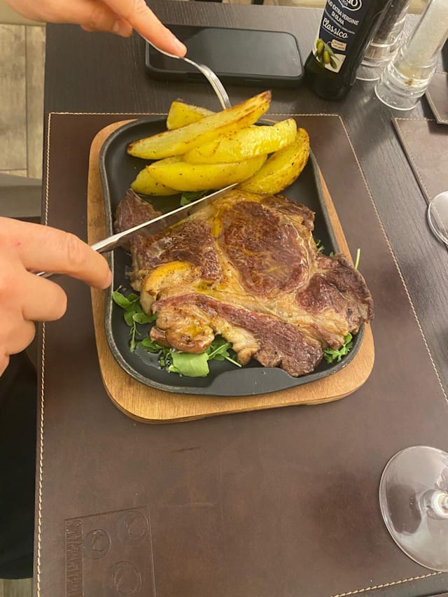 6.5/10Nice restaurant in a small road. The restaurant is located at the -1 level. Service was ok, we did not like the food that much but maybe it is because of our taste (we had carbonara and ravioli ripieni all' amatriciana). The tagliere was ok, I would have expected more variety of affettati, bit all in all ok (1 cheese, small mozzarella, cherry tomatoes, 2 slices mortadella, 2 slices coopa and 2 salami). Portions are ok. Very large menu with appetizers, pasta, seafood and meat.