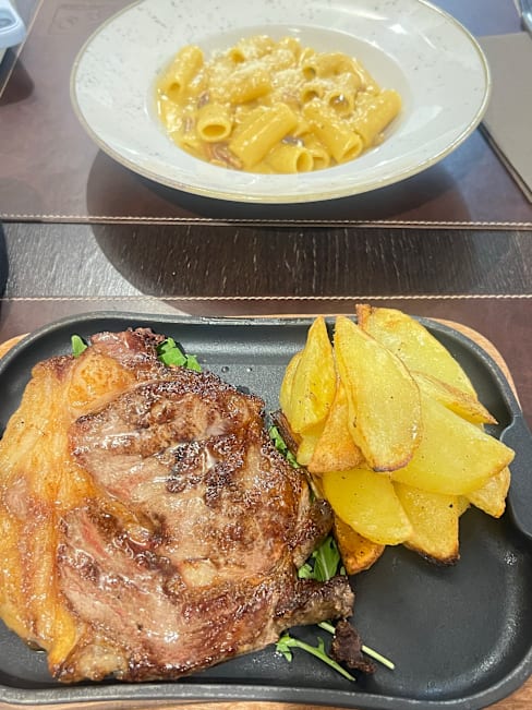 8.5/10The beef was good, and the potatoes were delicious too, but the pasta was really not to my taste—it was way too hard. The restaurant had a great ambience, but it was so crowded that we only got a small table right by the restroom, so we didn’t get to enjoy the atmosphere at all.