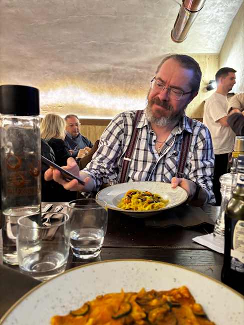 6.5/10Nice restaurant in a small road. The restaurant is located at the -1 level. Service was ok, we did not like the food that much but maybe it is because of our taste (we had carbonara and ravioli ripieni all' amatriciana). The tagliere was ok, I would have expected more variety of affettati, bit all in all ok (1 cheese, small mozzarella, cherry tomatoes, 2 slices mortadella, 2 slices coopa and 2 salami). Portions are ok. Very large menu with appetizers, pasta, seafood and meat.