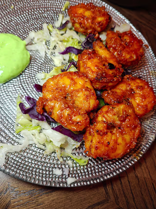 - Prawn tikka with a touch of garlic, a flavourful experience.