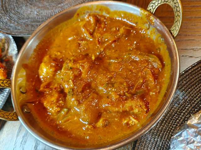 - Delicious Indian curry with a surprising blend with mango. Low spicy.