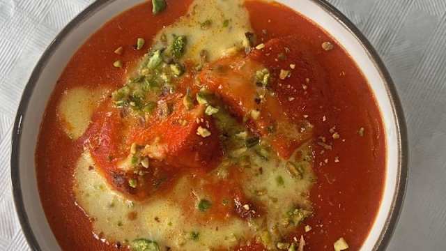 - Queso fresco cocinado en una salsa de espinacas y condimentado con especias