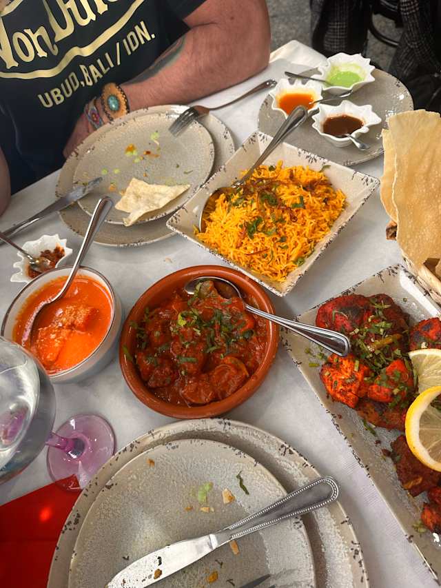 10/10Had the butter chicken, lamb biryani, and naan with my girlfriend — her first time trying Indian food, and she absolutely loved it. For me, this place is easily top 2 for Indian cuisine I’ve ever had. The waiter was very attentive and shared stories about Indian, Bangladeshi, and Spanish culture. Great food, great service, and a perfect night with my girl. Highly recommend.