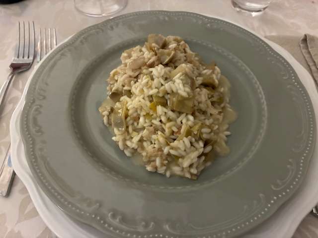 - Accompagnata da crema di cavolo nero, caciotta morbida e crumble di salsiccia e da vellutata di zucca, guanciale croccante, parmigiano reggiano e aceto balsamico