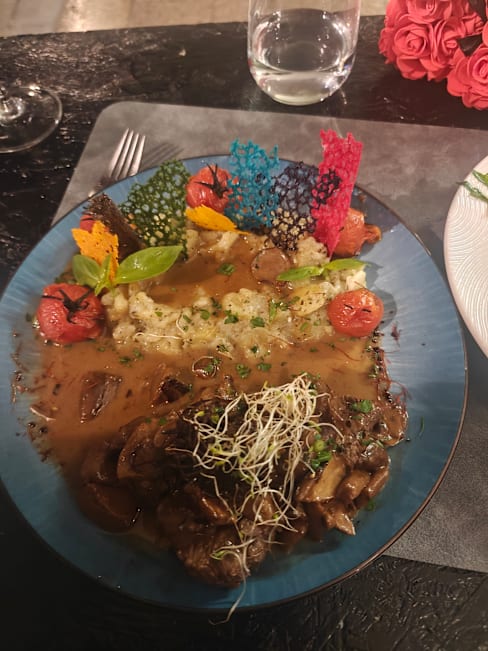 5/10Service staff good made you feel very welcome, sharing platter for 2 nice but why 3 olives? 1.5 each ?. Main course small portions and lacked flavour. Why do different coloured Parmesan crisps, blue should not be be a colour on the plate with the ravioli’s Also chose a bottle of wine, he said this one’s better yes when we got bill 12 Swiss francs more. That should have been mentioned when he upscaled us. We have had better meals in Geneva, this place just didn’t hit the food spot, ambiance and waiters all good.