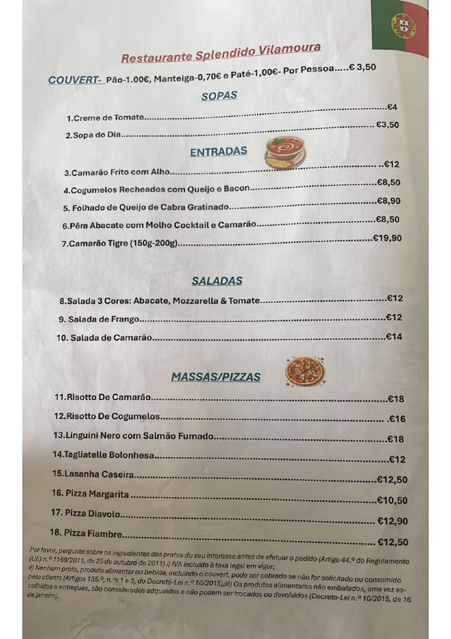 10/10As visitors to the area we made an impulse decision to book a table on the way back from a beach day. What a fantastic choice this turned out to be. Owned and ran by the most delightful family we had the pleasure of meeting 3 generations during our visit. Incredible choice of fishes to select from. After much discussion as stuck for choice we both chose the amazing Linguine Nero with smoked Salmon with additional shrimp. !! Wow wow. Simply outstanding. We are so pleased we our Google search lead us to Splendido.. just 6 minutes from Vilamoura beach by car and fraction of the price of marina restaurants yet with outstanding quality. What a gem of a find. Dont miss this. Simply a class restaurant bursting with local delicacies. Thankyou for a wonderful first visit. Our only regret is not discovering this gem earlier on out holiday.