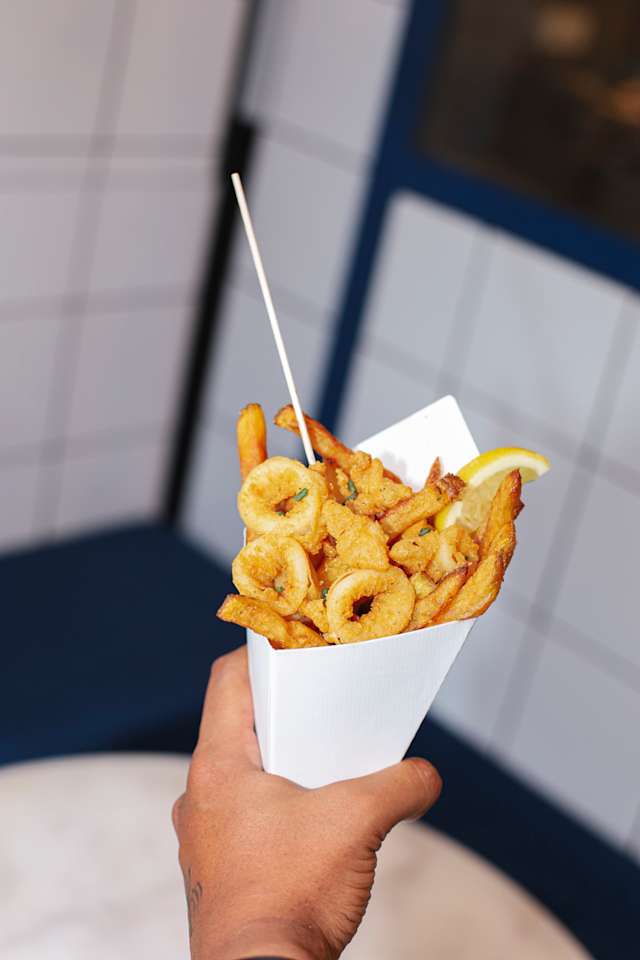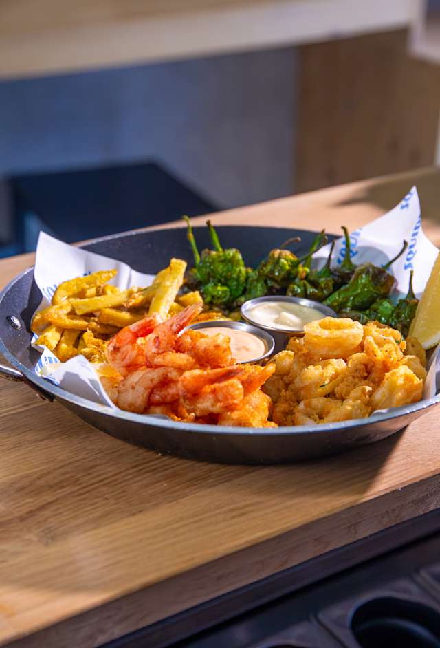 - Camarones hervidos salsa tártara casera, rúcula y pepinillos