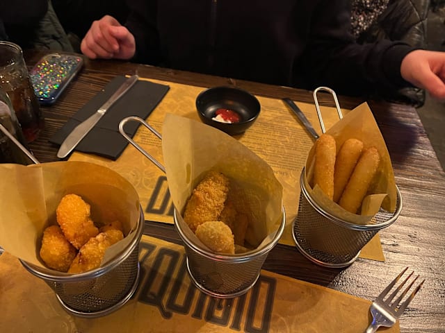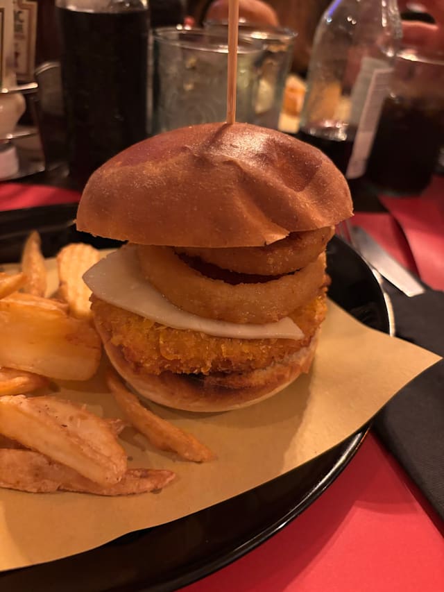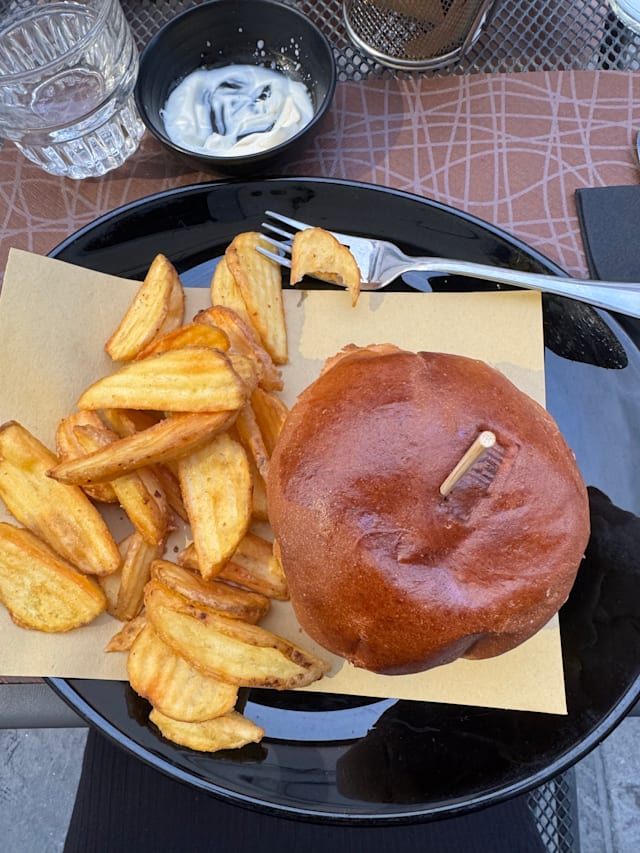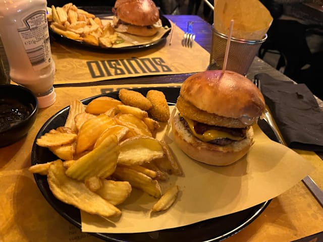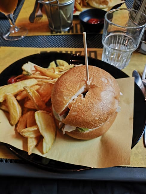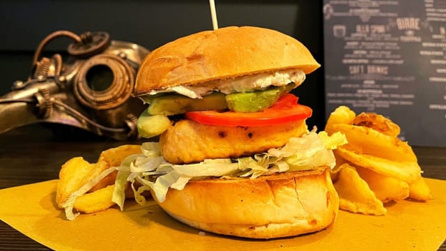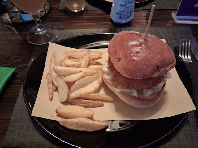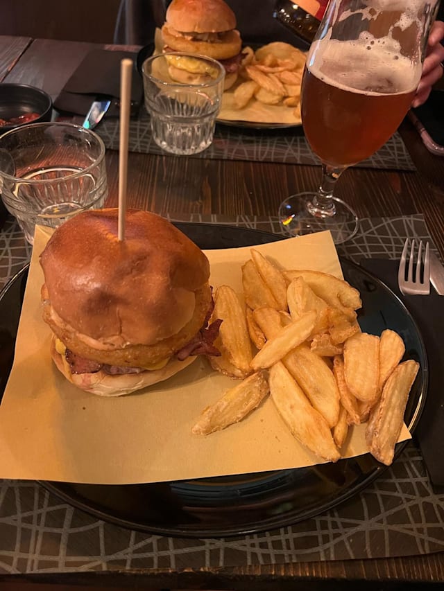 8/10The restaurant is centrally located. My boyfriend and I had a dinner here on a winter night. We both had burgers: a vegan gluten free option for me and a chicken burger + chicken nuggets for my boyfriend. The only one thing I didn't like is that both my burger and fries came slitly warm, not hot. Except for this small down side, both burgers were good and tasty. The food and the beer met our expectations. Nice decor in a steampunk style. Right value for money.