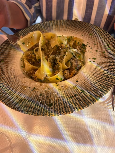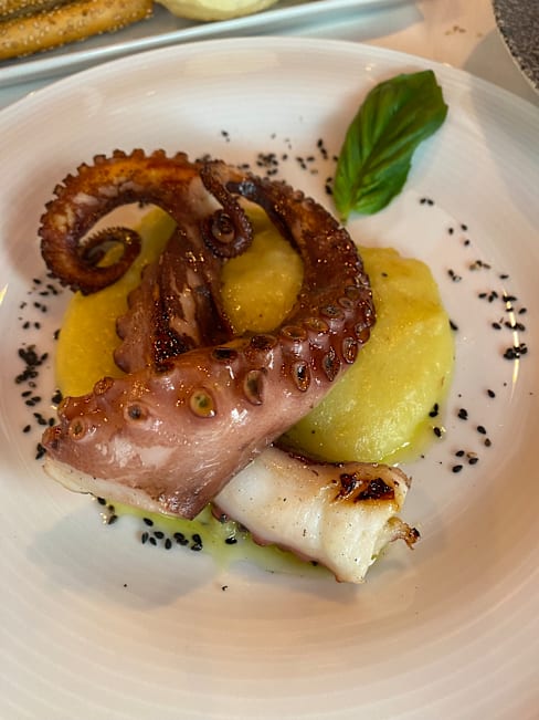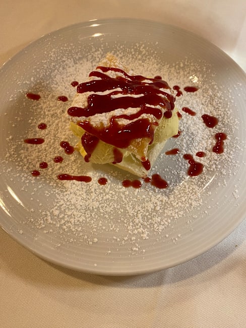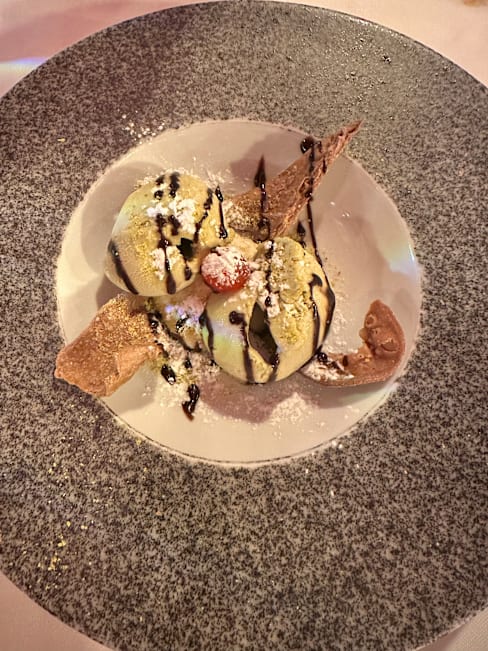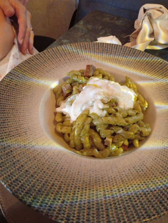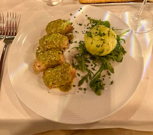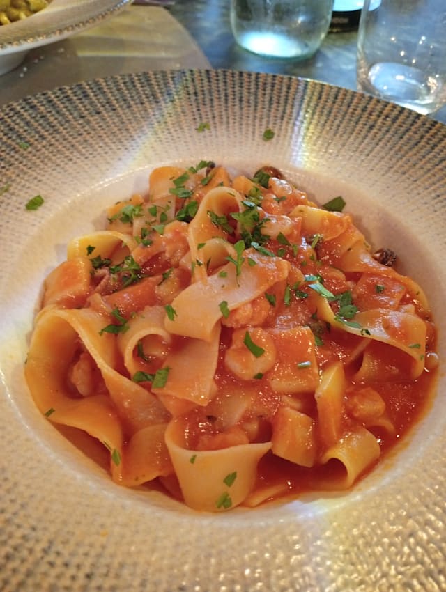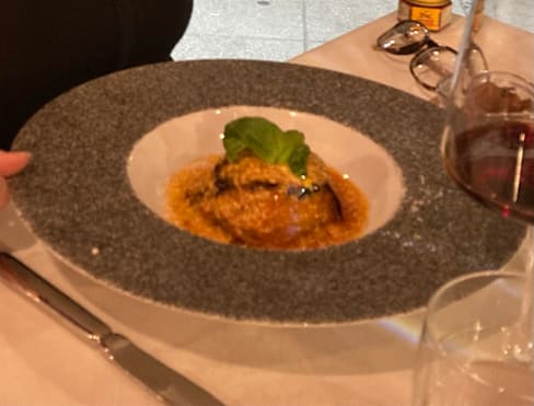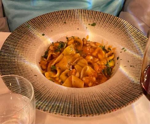 10/10The food and the service were simply outstanding! We were greeted with a complementary glass of Prosecco as well as a taste of their caponata which was delicious! I had the pork rolls with the pistachio sauce, my friends had the pappardelle with shrimp and calamari and the eggplant parmigiana, accompanied by a lovely bottle of Nero D’Avola. The restaurant is beautiful. The ambience is lovely. The service was sublime. I will be coming back.