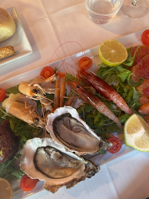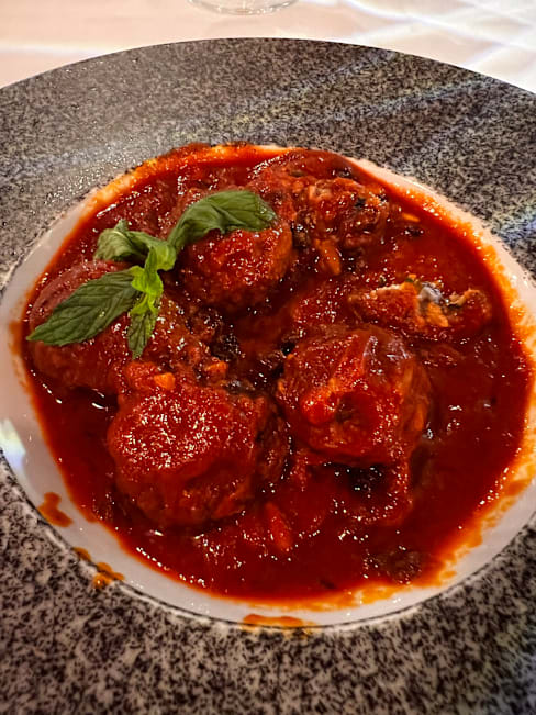 10/10Both waiters and the owner were knowledgeable about their menu, pushing towards the local fish catch of the day. My wife was going to have the steak but I’m glad she was convinced to share the Sea Bass (Branzina) with me. We had inclusive aperitif. Veronica had Pasta with porcini mushrooms and Italian sausage. Which was delicious. I had the seafood meatballs in tomato which was beautiful. The wine list was good although it contained many French and other countries they only seemed to have Sicilian wines which I’m pleased otherwise I would not have tasted the lovely Vigna San Francesco Chardonnay. At a very good price that I can’t buy wholesale in UK. Great restaurant