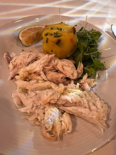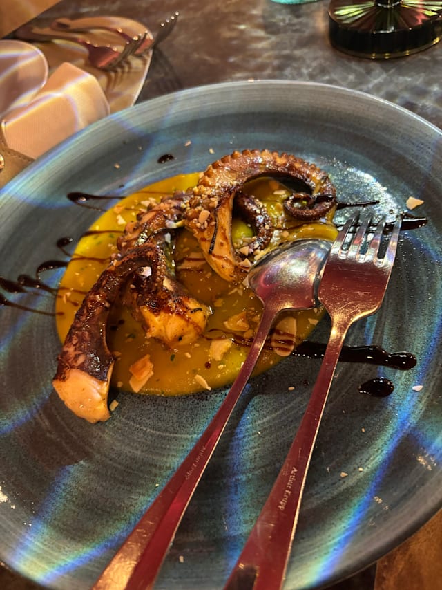 10/10We had the salted Catch of the Day - red snapper. It was expertly prepared and served table side. Service was wonderful and they have an English menu. Beautiful decor.