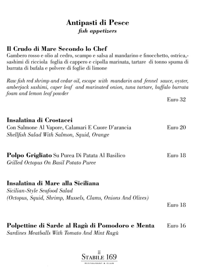 10/10Lovely restaurant, incredible food, and impeccable service - thank you Manuel! We spent 4 days in Palermo and Stabile 169 was by far the best! We will recommend it to all of our friends traveling from the States.