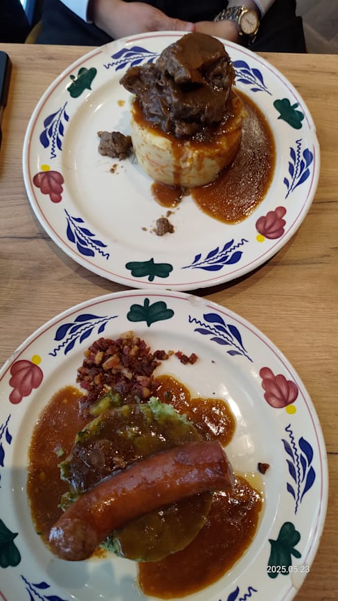 9.5/10+1Dutch cuisine for dinner.. Booked the place based on The Fork ratings and rank & not disappointed at all. They were kind enough to push our reservation by 30 minutes. The server was kind to suggest the beer options and non-beef options. Ambience was good. Dutch beer lived up to its expectations. Starter herring was so fresh & their traditional Stamppot dishes were also good. The French toast desert was the best of the lot. Definitely worth visiting if you’re searching for local cuisine when in Amsterdam; definitely book before you go.