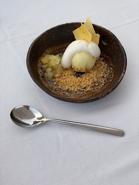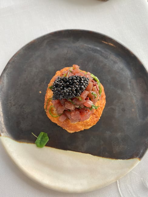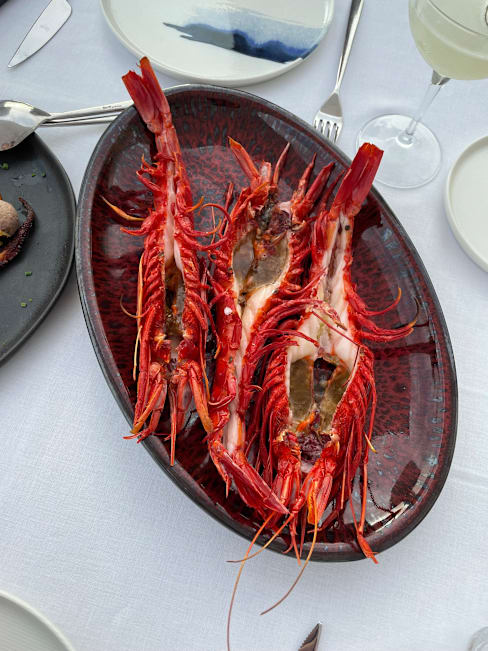 10/10I booked a month ago but accidentally booked the wrong date. The team there was so kind to help us find a booking despite the Easter holiday rush. Service was great and when we looked lost in the menu they took the initiative to recommend dishes with local ingredients. The sea view was amazing and the modernist hotel in the background was also complimentary. Food was great overall. Can’t really go wrong with the char grilled octopus, the char was on point and a interesting pair with the Mojo sauce. We were recommended to come for the Carabineros and it did not disappoint. Fresh and juicy, eating the head was like taking a shot of prawn bisque. We also ordered chutoro tartare and pedron peppers. The pineapple sorbet with rum foam and coconut crumble was a special way to end the meal.