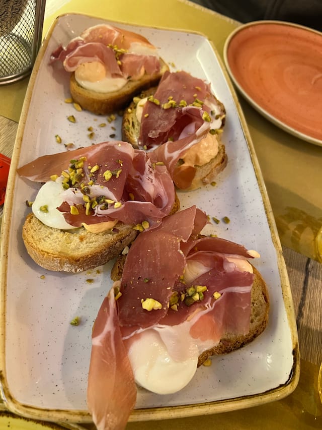 Maio al pomodoro infornato homemade, mozzarella di bufala, crudo nazionale, pistacchio