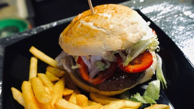 Bun, Hamburger Vegano, Crema di Piselli, Pomodori Secchi