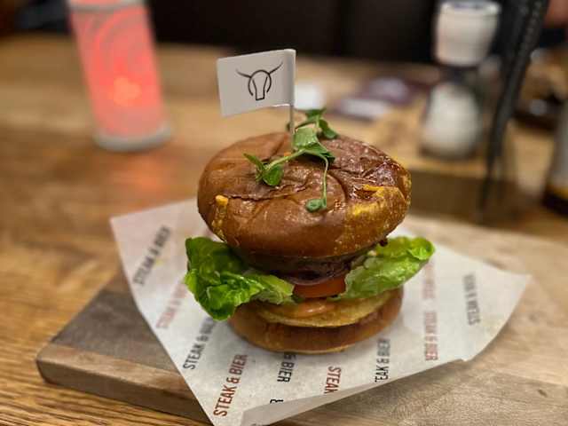 - Brioche bun | beef 200 grams | bacon cheddar cheese | homemade burger sauce onion | tomato | lettuce | cucumber