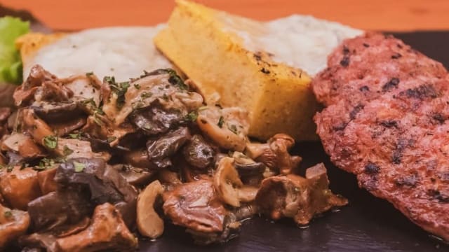 Polenta gialla di storo, funghi misti, formaggio ledro alla piastra