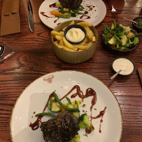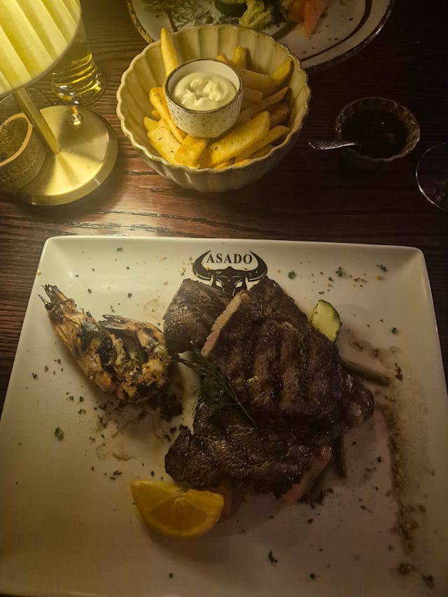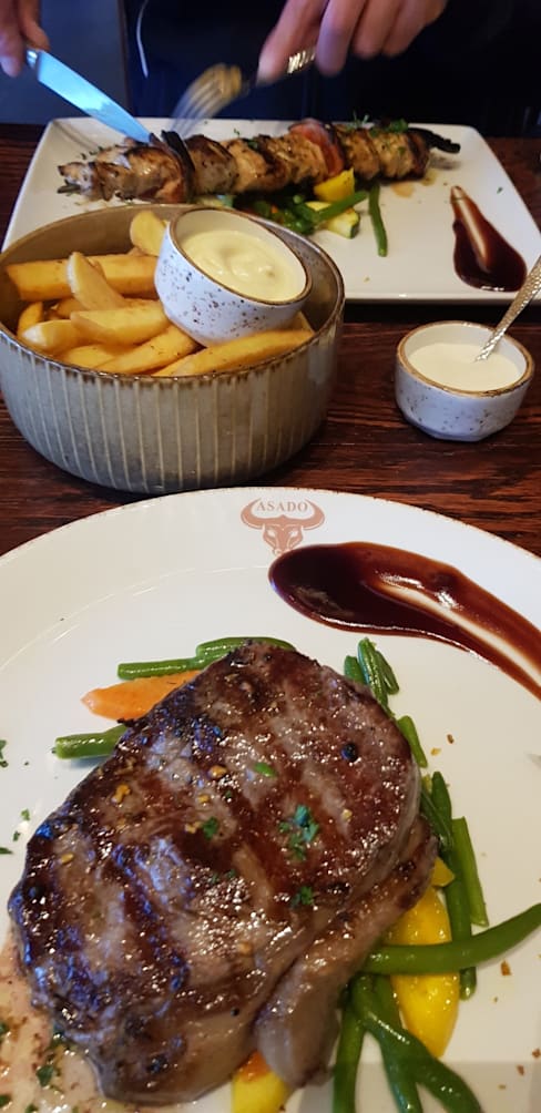 6.5/10The service and the ambiance was fantastic! The main course was tasty, however it was too expensive especially the steak. I think they drastically increased their prices recently. We paid a bill of Euro 359 for 3 adults and 3 kids. For the main course we had 2 steaks, vegan burger, lamp and spare ribs and had to buy the accompaniment separately. Don’t get me started on the desert 🤦🏽♀️ we paid €13 if I remember correctly, the desert was called Asado with love which was a complete joke, the triples chocolate and the sorbet were really great.