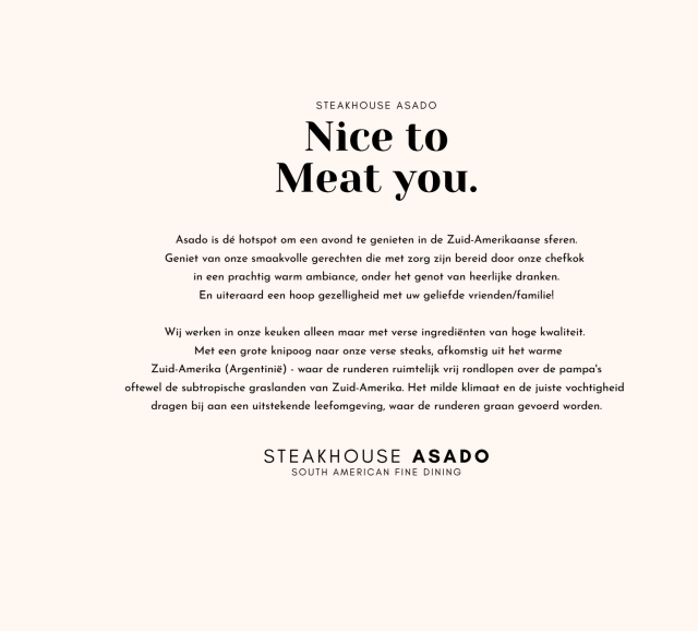 Hi Bob! Duidelijke taal! Bedankt voor de review. Hopelijk tot snel weer! Love, Team Asado