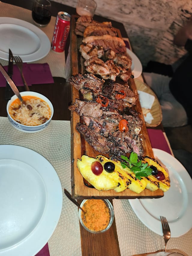 5/10There was no air condition while temperature was very high (30 degrees centigrades) flies disturbed us. Dishes were put on our table without asking if we want them (and of course were part of the bill). We were not given 30% discount from prices on menu. We took dishes separately and not a part of meal. The meat was of medium quality. Side dishes were very good. If I’ll be generous I’ll give that restaurant a grade of 6/10 Thank you.