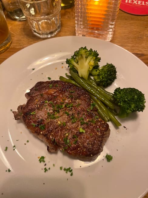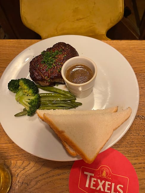 6.5/10Steaks were good, but the rest around it was average and overpriced, we had some bread with aïoli for starter with the beer, and bread was not that fresh and aïoli was average, for more than 4 euro I expect better quality