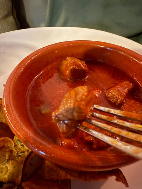The menu was fixed price for two entree options so my wife and I tried both. The cod was bland and the beef was buried in a very tomato-intense sauce.