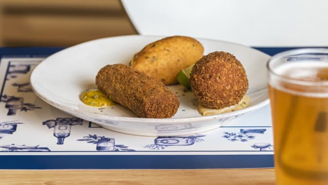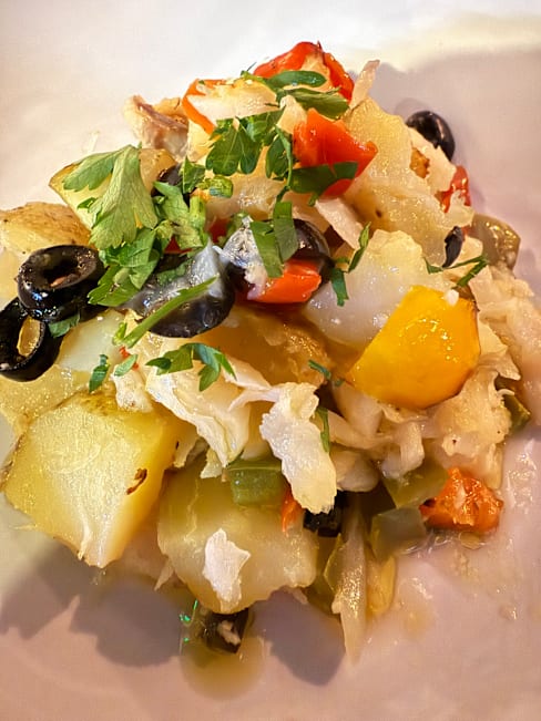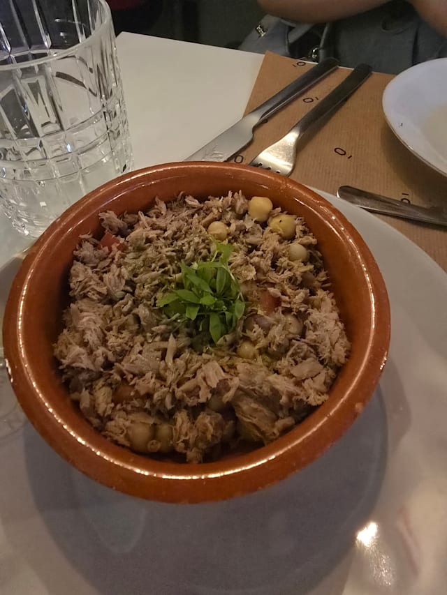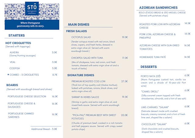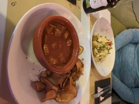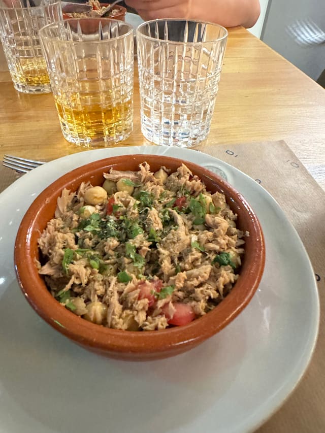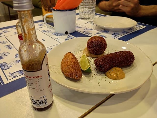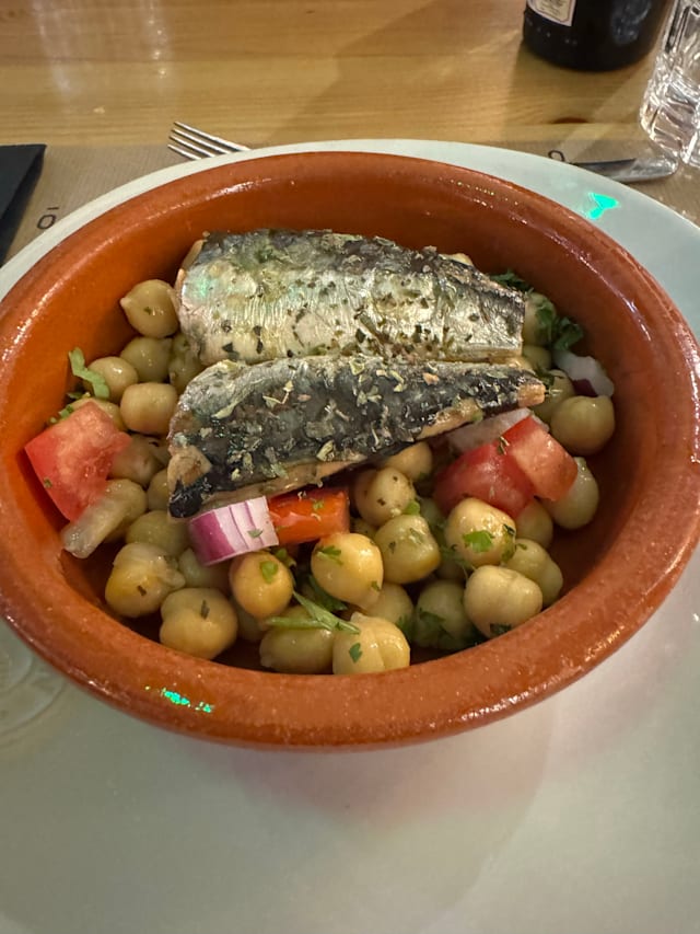 Can't speak to lunch but the dinner was disappointing for the price. You start with a cheese and port wine course which was good. The croquettes were probably the highlight, especially the alheira one. At that point the next two courses are the salads and mains. The salads are tuna or half a sardine over a bed of chickpeas. The mains are cod and potatoes or beef cubes in a tomato sauce and sweet potato chips/crisps. Both were fine but for the price I pretty underwhelming. The lime tart desert was alright.